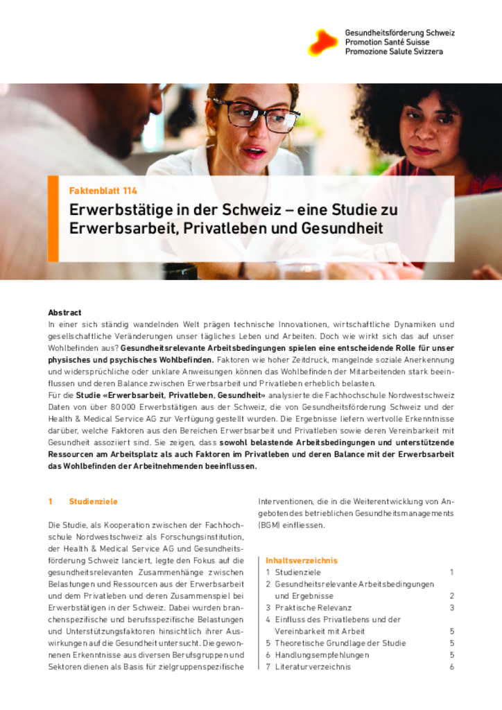 Für gesunde Unternehmen braucht es gesunde Mitarbeitende. Wir unterstützten Sie mit Informationen und Hilfsmitteln bei Ihrem betrieblichen Gesundheitsmanagement (BGM). Unser Angebot richtet sich an Führungsperson, HR-Verantwortliche und Interessierte, insbesondere aus KMU.