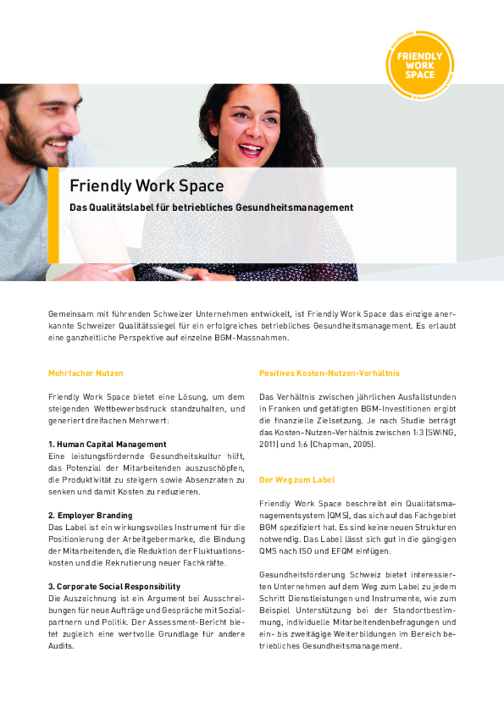 Link kopieren Produkteblatt 28.11.2025 Label «Friendly Work Space» Deutsch Französisch Italienisch Link kopieren