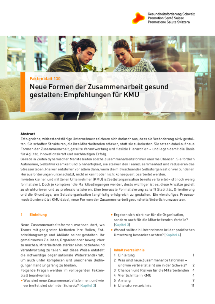 Link kopieren Faktenblatt 130 24.02.2026 Neue Formen der Zusammenarbeit gesund gestalten: Empfehlungen für KMU Deutsch Französisch Italienisch Link kopieren
