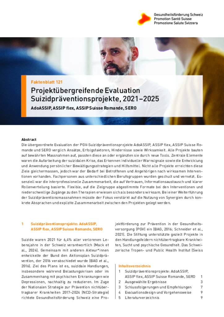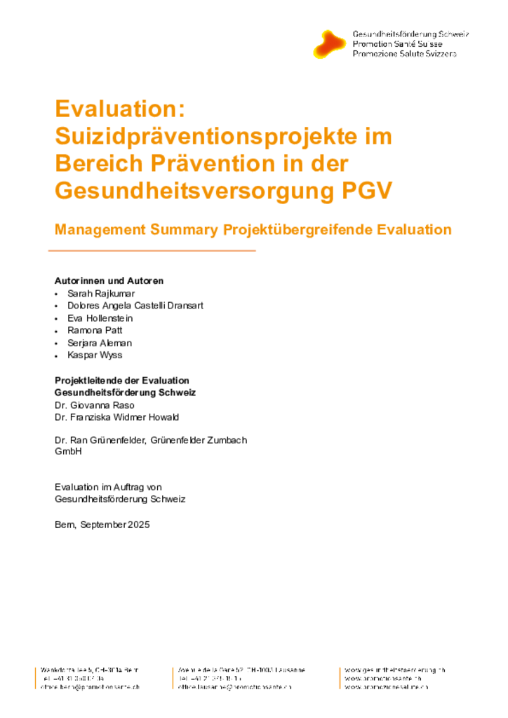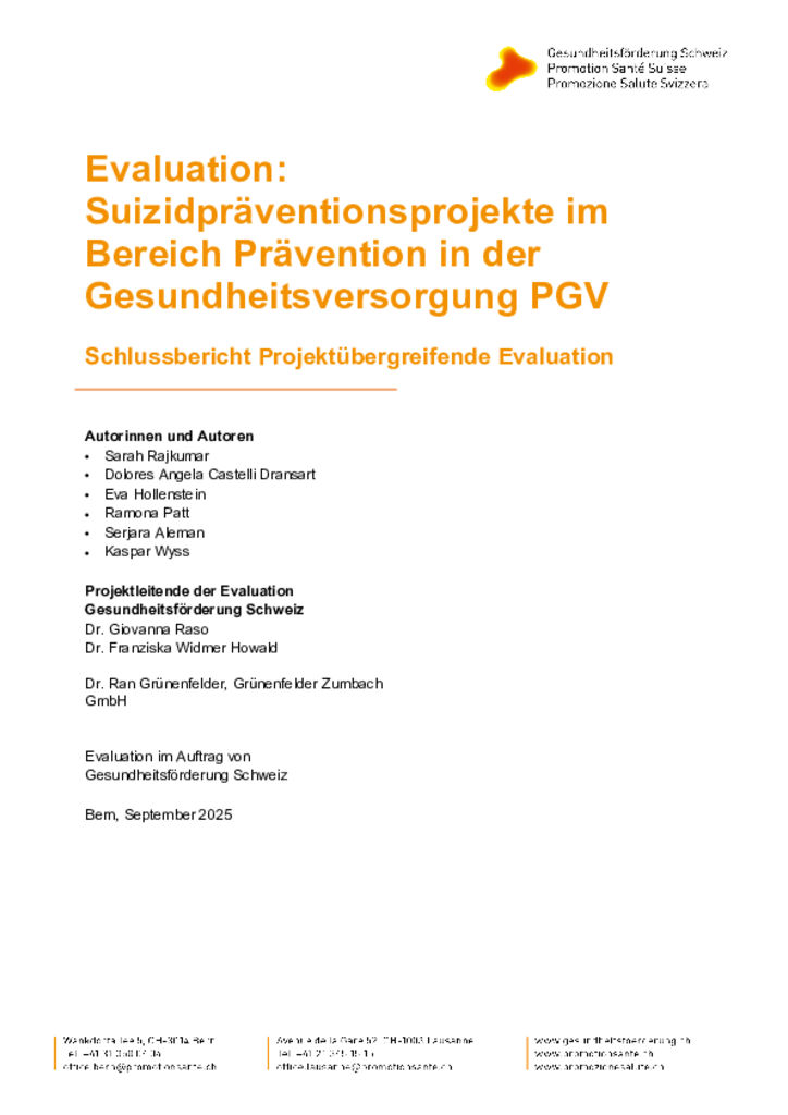 Evaluation: Suizidpräventionsprojekte im Bereich Prävention in der Gesundheitsversorgung PGV