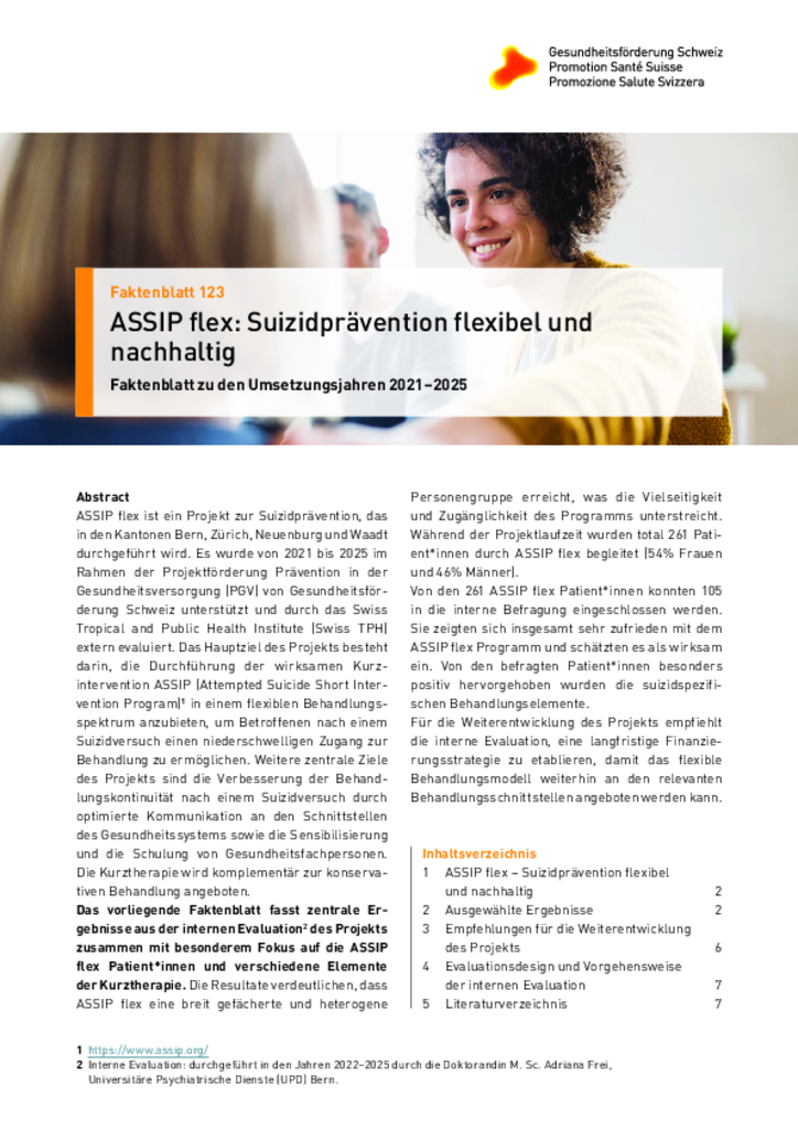 Link kopieren Faktenblatt 123 09.10.2025 ASSIP flex: Suizidprävention flexibel und nachhaltig Deutsch Französisch Link kopieren