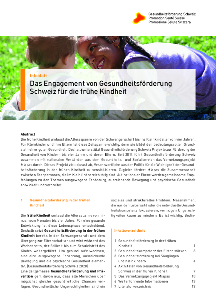Folgende Dokumente beinhalten Argumente zur Gesundheitsförderung in der frühen Kindheit: